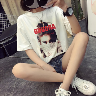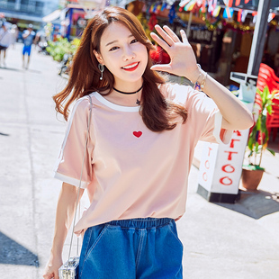休闲韩版时尚简约上衣女套头拼色短袖体恤