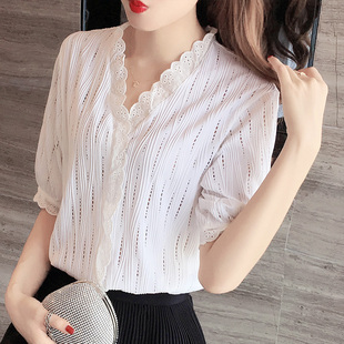 【皇倩儿】碎花雪纺衫木耳领喇叭袖上衣柔美