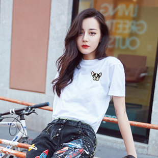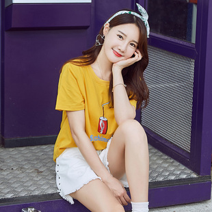 【韩都衣舍_范奎恩】纯色刺绣T恤