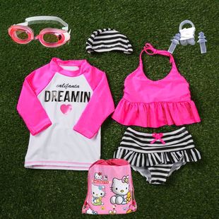 韩国防晒女童游泳衣+泳帽