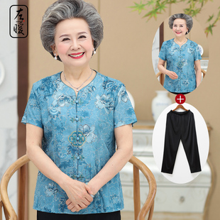 【烫金】奶奶夏装短袖+裤子两件套
