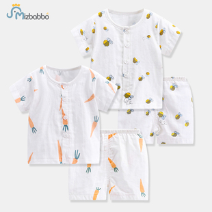 米巴布婴儿夏季薄款短袖纯棉套装