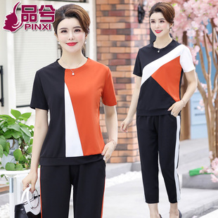 中老年女装短袖T恤套装妈妈装上衣+裤子
