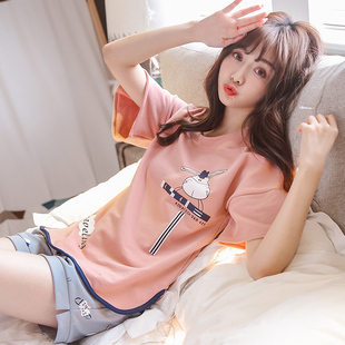女睡衣套装夏季纯棉睡裙学生外穿短裤家居服